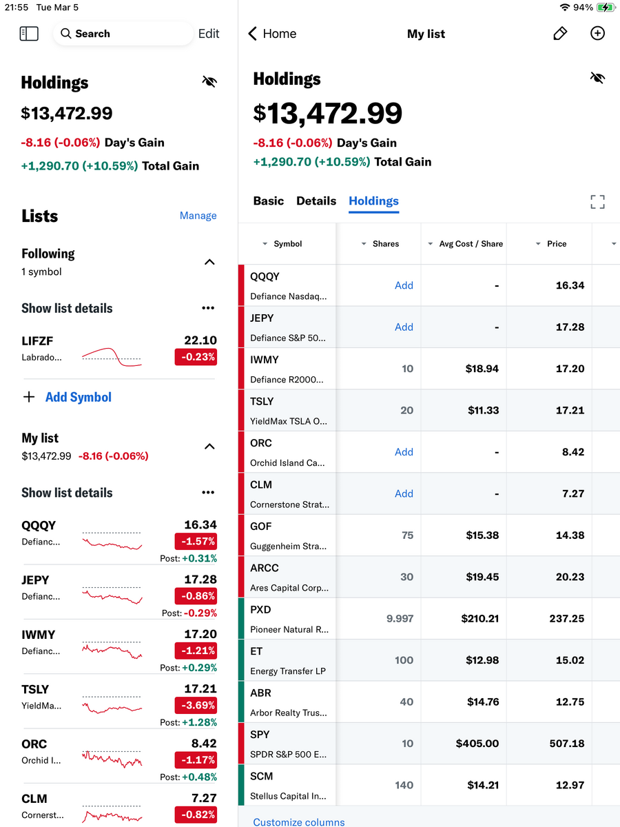 3月 $80.56 (SCM $18.66 + TSLY $8.11 +IWMY $11.00 + PXD $25.59 + ABR $17.20)